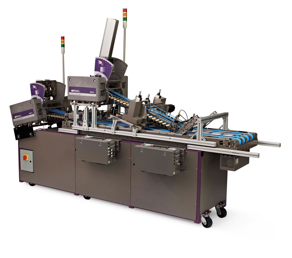 - Platzsparende Zuführung zur Integration in andere Systeme wie z.B. in Falt-Klebemaschine.