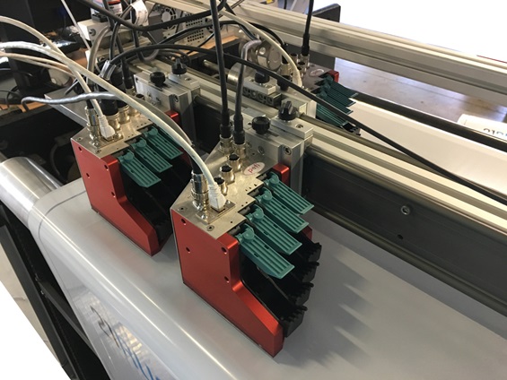 Einsatz in Endloskonfektionierungsanlagen zum Eindruck von Barcodes, Nummern und Grafiken in einem Arbeitsgang.