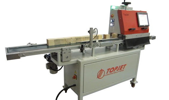 Sonderlösung zum Bedrucken von Holzklötzen, die für den Bau von Paletten verwendet werden.